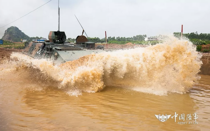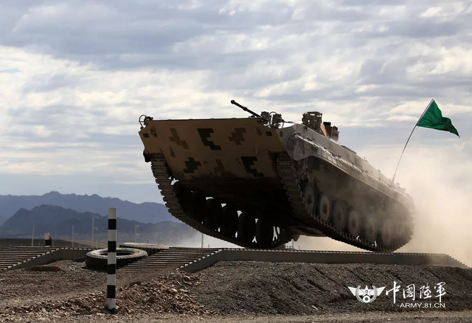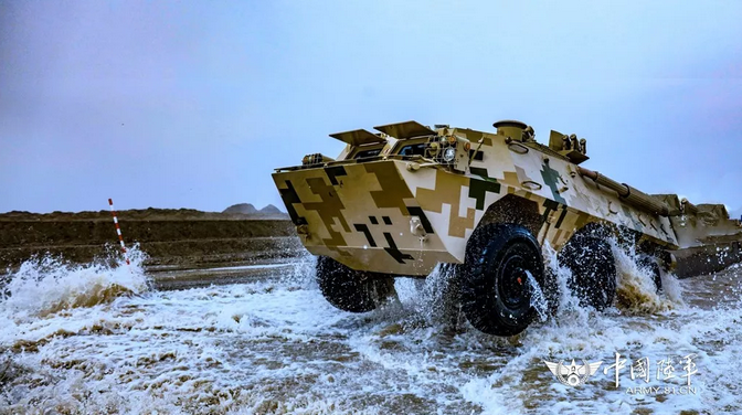 集訓(xùn)官兵駕駛戰(zhàn)車快速通過(guò)車轍橋