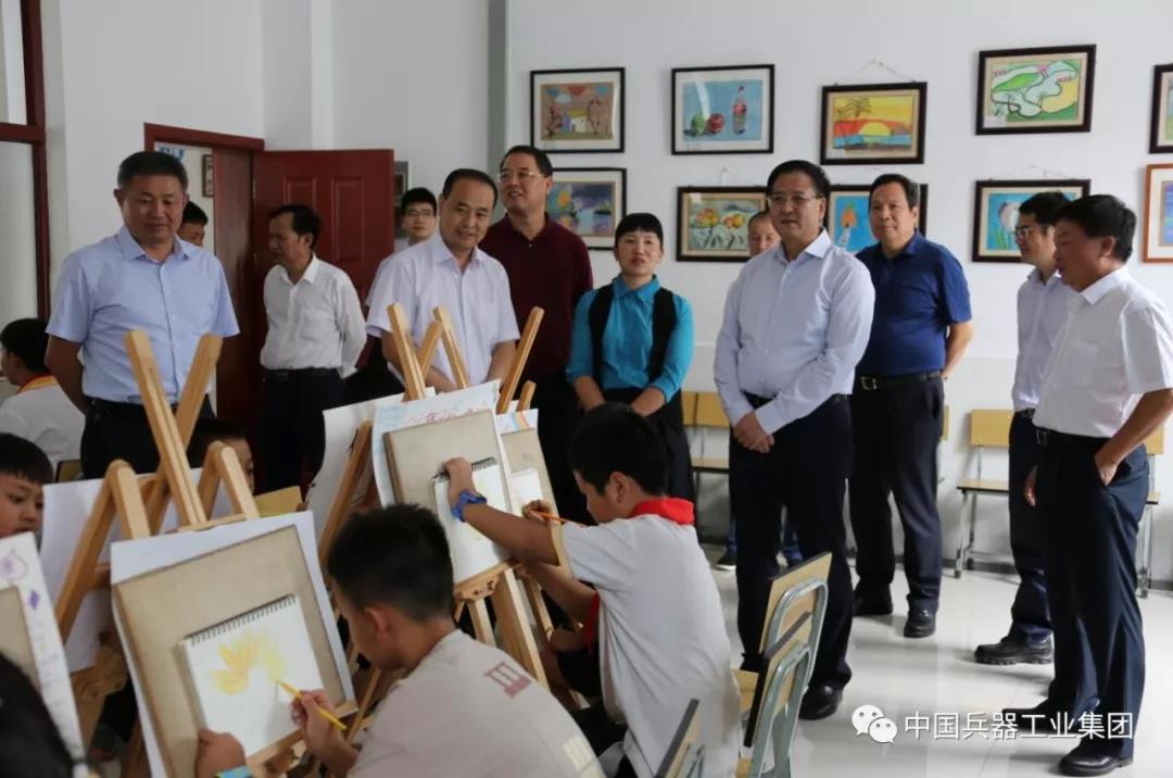 扶貧先扶智,焦開河一行首先來到了具有百余年辦學(xué)歷史的紅河縣第一小學(xué)。兵器工業(yè)集團2018年共投入300余萬元支持紅河縣教育事業(yè),為紅河縣第一小學(xué)等19所中小學(xué)配備音體美器材、科學(xué)實驗儀器設(shè)備及圖書設(shè)備。調(diào)研組在新援建的圖書館里聽取了紅河縣教育局關(guān)于兵工教育扶貧的工作介紹,中國扶貧基金會介紹了與集團公司開展戰(zhàn)略合作,引入社會資源開展的“書路計劃”等扶貧項目以及引進資金情況。焦開河逐一查看了集團公司援建的科學(xué)實驗室、實驗儀器設(shè)備室、計算機教室等;在音樂教室,穿著民族服裝的哈尼族和彝族小學(xué)生用稚嫩的聲音唱了一曲《歡迎你》,表達了感謝之情;美術(shù)教室里,焦開河與正在上課的同學(xué)們交談并合影留念。