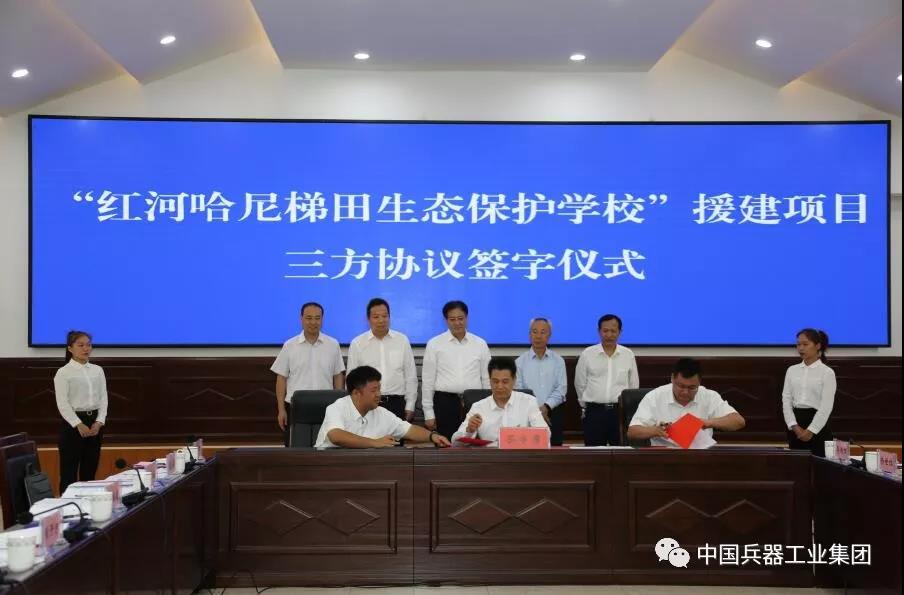 會上,兵器工業(yè)集團、中國扶貧基金會和紅河縣簽署了“紅河哈尼梯田生態(tài)保護學(xué)?!痹椖咳絽f(xié)議。