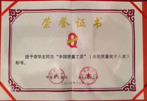 兵器工業(yè)集團(tuán)宿華龍榮獲第十九屆全國質(zhì)量獎“中國質(zhì)量工匠”稱號
