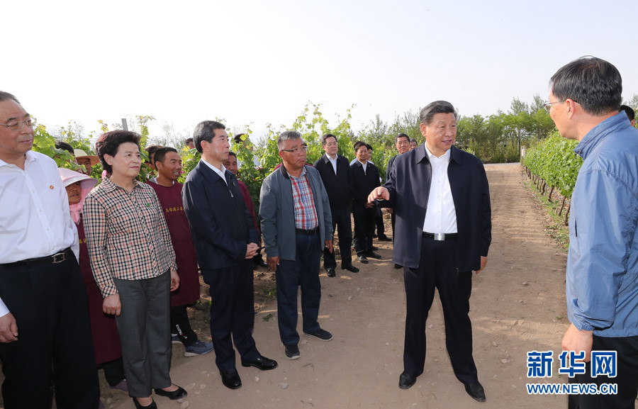6月8日至10日,中共中央總書(shū)記、國(guó)家主席、中央軍委主席習(xí)近平在寧夏考察。這是6月9日下午,習(xí)近平在銀川市西夏區(qū)葡萄種植基地,同工人和技術(shù)人員交流。 新華社記者 鞠鵬 攝