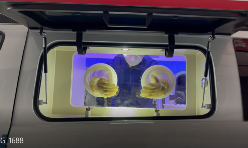 “這款車能快速抵達疑似疫情區(qū)域和大型活動現(xiàn)場,60秒內(nèi)完成部署,日采樣量不低于1300份,真正達到了機動快速檢測的目的,可應(yīng)用于關(guān)口、機場、港口、社區(qū)、服務(wù)區(qū)等?!睋?jù)一機集團專汽公司副經(jīng)理李永祥介紹,車內(nèi)新風(fēng)正壓系統(tǒng)開啟時,能在較短時間里使檢測艙里的潔凈氣壓大于艙外氣壓,對醫(yī)護人員形成較強的安全保護。同時,完善的配套設(shè)施也為醫(yī)護人員提供了較為舒適的工作環(huán)境。