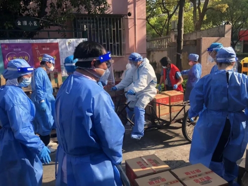 上海利浦公司志愿者搬運(yùn)分發(fā)物資