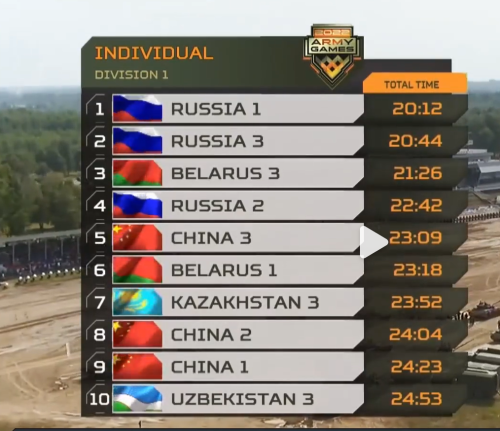 截至目前,“國際軍事比賽-2022”中 “蘇沃洛夫突擊”項(xiàng)目比賽全部結(jié)束,“最佳車組”第一名由中國參賽隊(duì)2號(hào)車組獲得,“最佳車組”第二名由中國參賽隊(duì)3號(hào)車組和俄羅斯參賽隊(duì)2號(hào)車組獲得,“最佳車組”第三名由中國參賽隊(duì)1號(hào)車組和白俄羅斯參賽隊(duì)3號(hào)車組獲得,伊朗參賽隊(duì)1號(hào)車組和委內(nèi)瑞拉參賽隊(duì)3號(hào)車組獲評(píng)“優(yōu)秀車組”。中國參賽隊(duì)車長中士劉艷、炮長下士劉金龍、駕駛員中士李金榮分別獲得“最佳車長”“最佳炮長”“最佳駕駛員”,該項(xiàng)目裁判長、副裁判長現(xiàn)場為他們頒發(fā)了獎(jiǎng)牌和證書。