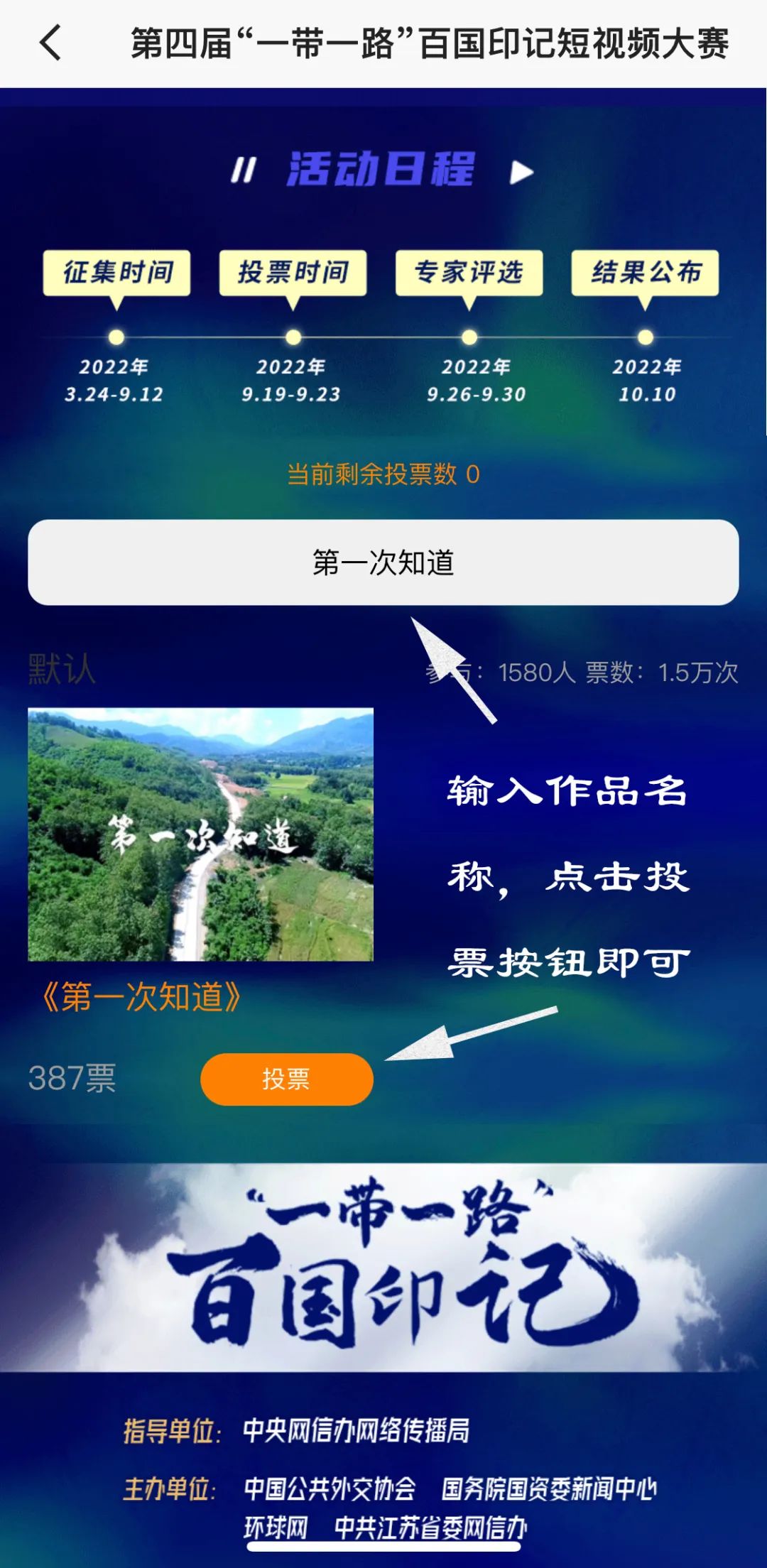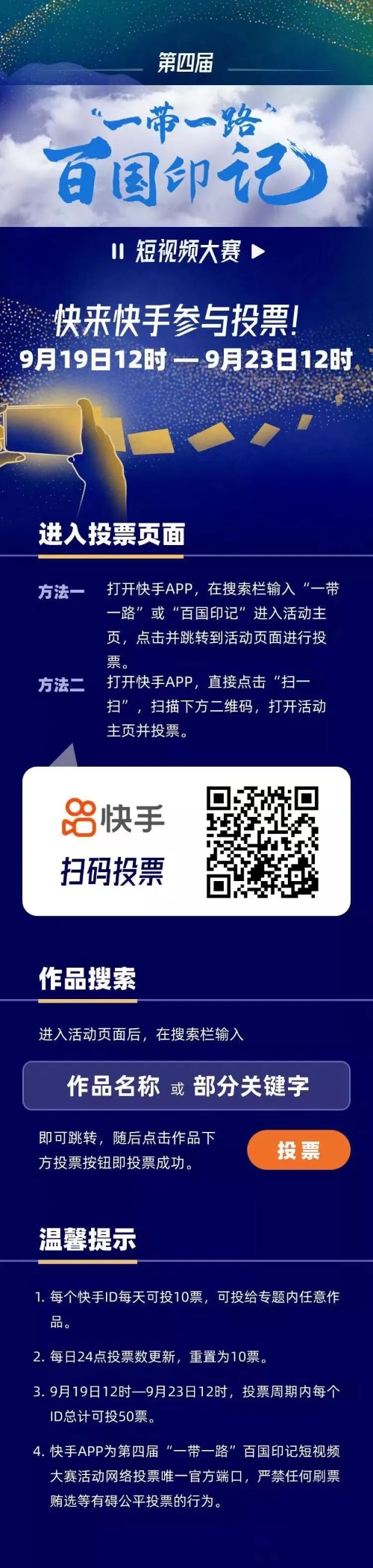 9月19日,由中央網(wǎng)信辦網(wǎng)絡(luò)傳播局指導(dǎo),中國(guó)公共外交協(xié)會(huì)、國(guó)務(wù)院國(guó)資委新聞中心、環(huán)球網(wǎng)和中共江蘇省委網(wǎng)信辦聯(lián)合主辦的第四屆“一帶一路”百國(guó)印記短視頻大賽完成作品征集,正式開啟投票階段。