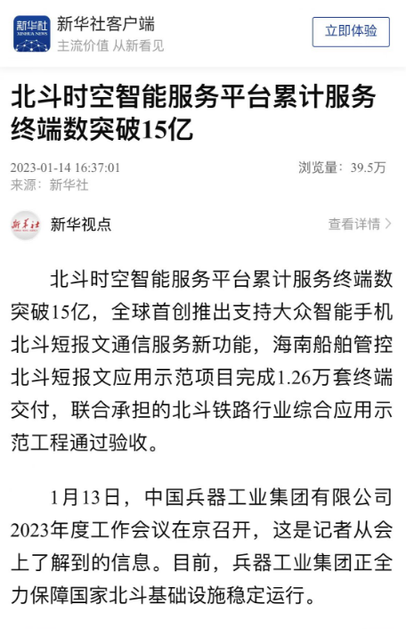 新華社:北斗時(shí)空智能服務(wù)平臺(tái)累計(jì)服務(wù)終端數(shù)突破15億