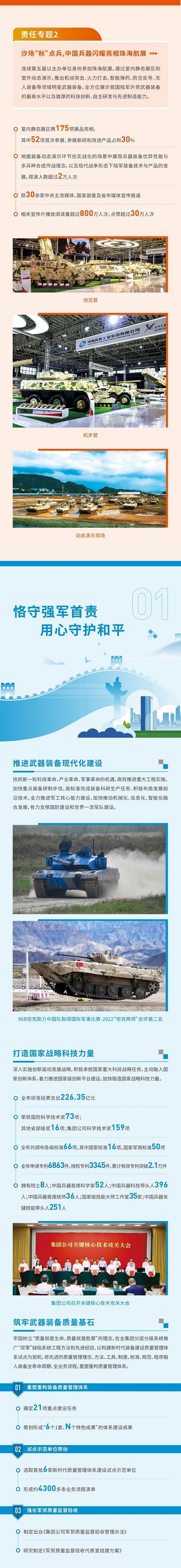 《報告》開篇設置“突出政治引領,全面加強黨的領導黨的建設”“沙場‘秋’點兵,中國兵器閃耀亮相珠海航展”兩個責任專題,聚焦集團公司加強黨建、強軍報國的擔當作為,書寫集團公司在新時代新征程上的奮進答卷。主體章節(jié)以“用心守護和平、用力爭創(chuàng)一流、用情溫暖社會”為主題,從恪守強軍首責、服務經(jīng)濟建設、共創(chuàng)美好生活三個維度展現(xiàn)了集團公司立足“1+5”戰(zhàn)略和“雙十”規(guī)劃,聚焦新時代新征程新任務高質(zhì)量履行政治責任、經(jīng)濟責任和社會責任的具體行動和成效亮點,詮釋了集團公司服務國家戰(zhàn)略、服務國防和軍隊現(xiàn)代化建設、服務國家經(jīng)濟社會發(fā)展的職責使命。