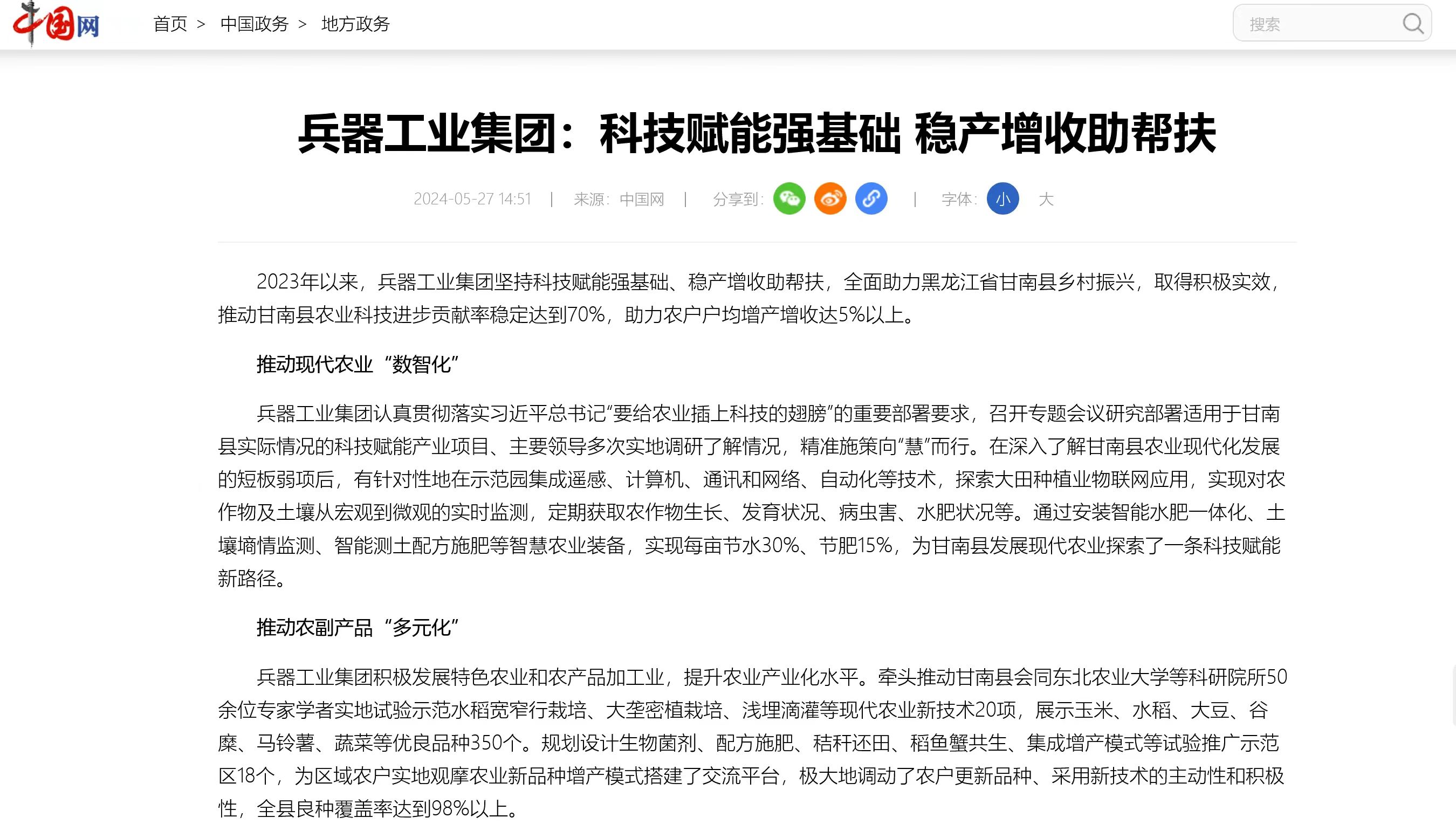 中國網報道兵器工業(yè)集團科技賦能 助力黑龍江省甘南縣鄉(xiāng)村振興 |