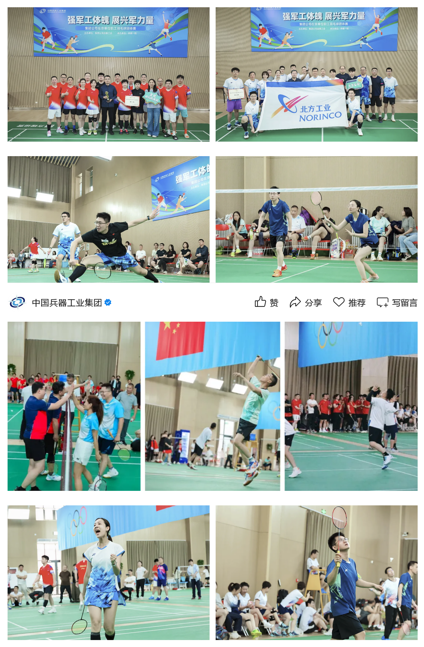 本次羽毛球團(tuán)體賽,是集團(tuán)公司深化開(kāi)展群眾性體育活動(dòng),貫徹落實(shí)“健康中國(guó)”戰(zhàn)略的生動(dòng)實(shí)踐,也是打造“健康兵器”的積極行動(dòng),進(jìn)一步促進(jìn)在京單位職工溝通交流、增進(jìn)感情、加強(qiáng)團(tuán)結(jié),激發(fā)了廣大職工的向心力凝聚力戰(zhàn)斗力。下一步,集團(tuán)公司將繼續(xù)組織開(kāi)展形式多樣的文體活動(dòng),豐富職工文化生活,塑造職工健康體魄,為加快推動(dòng)兵器工業(yè)高質(zhì)量發(fā)展作出新的更大貢獻(xiàn)!